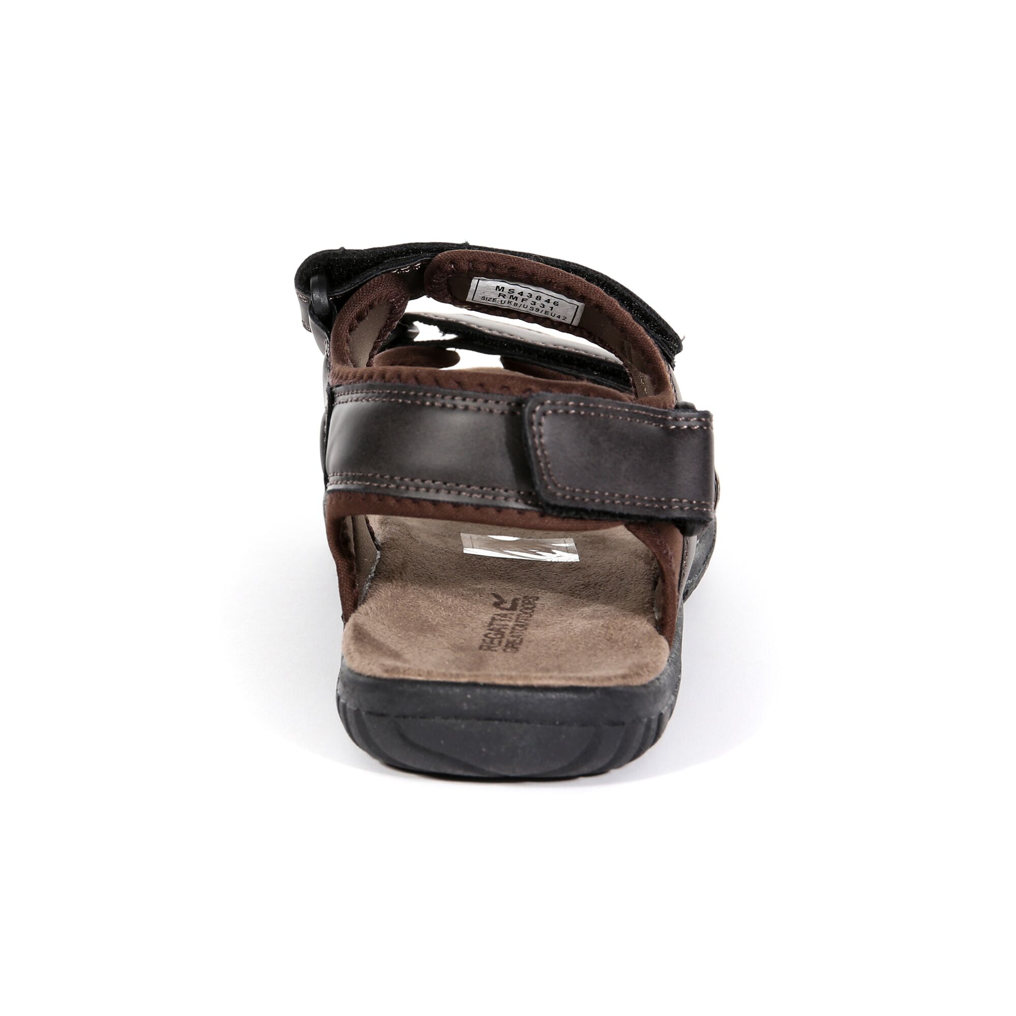Vīriešu sandales. Apavu virsma izgatavota no poliuretāna (mākslīgā āda), iekšpusē mīksts spandeksa audums, EVA triecienu apsorbējošā starpzole, viegla un izturīga TPR zole nodrošina lielisku saķeri ar virsmu. Svars: 275g. Sastāvs: 90% poliuretāns, 10% poliesters.