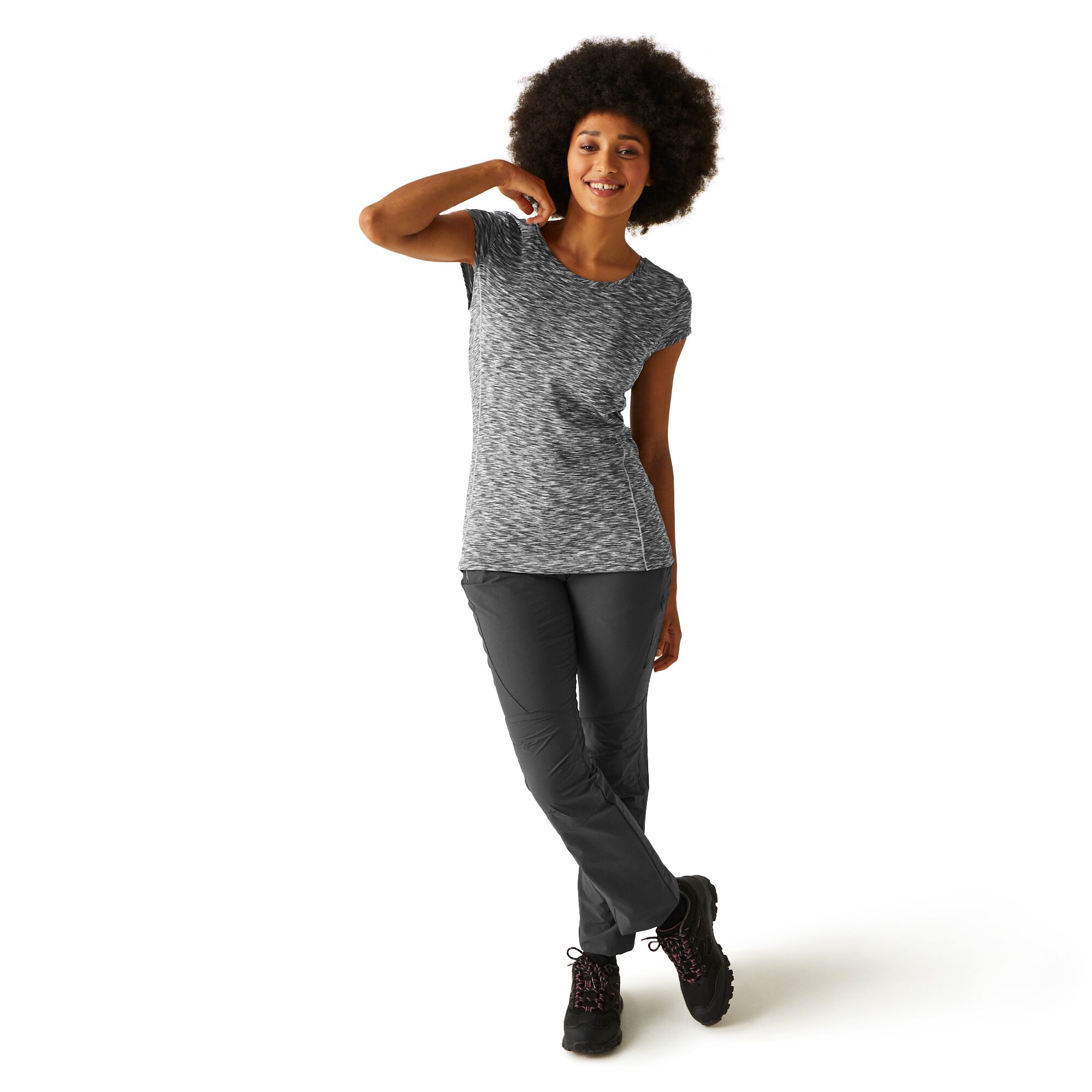 Stretchy, hardwearing and high-wicking - our Hyperdimension II women's sports top is just the thing for keeping active. Featuring polyester and elastane blend, the women's gym t-shirt will withstand wear and tear and move with you. The ladies sports top has a good wicking performance that moves moisture away from your skin for a fresh feel. It's quick-drying too so it's ideal for last-minute washing. Perfect for running, the gym and all-round sports.