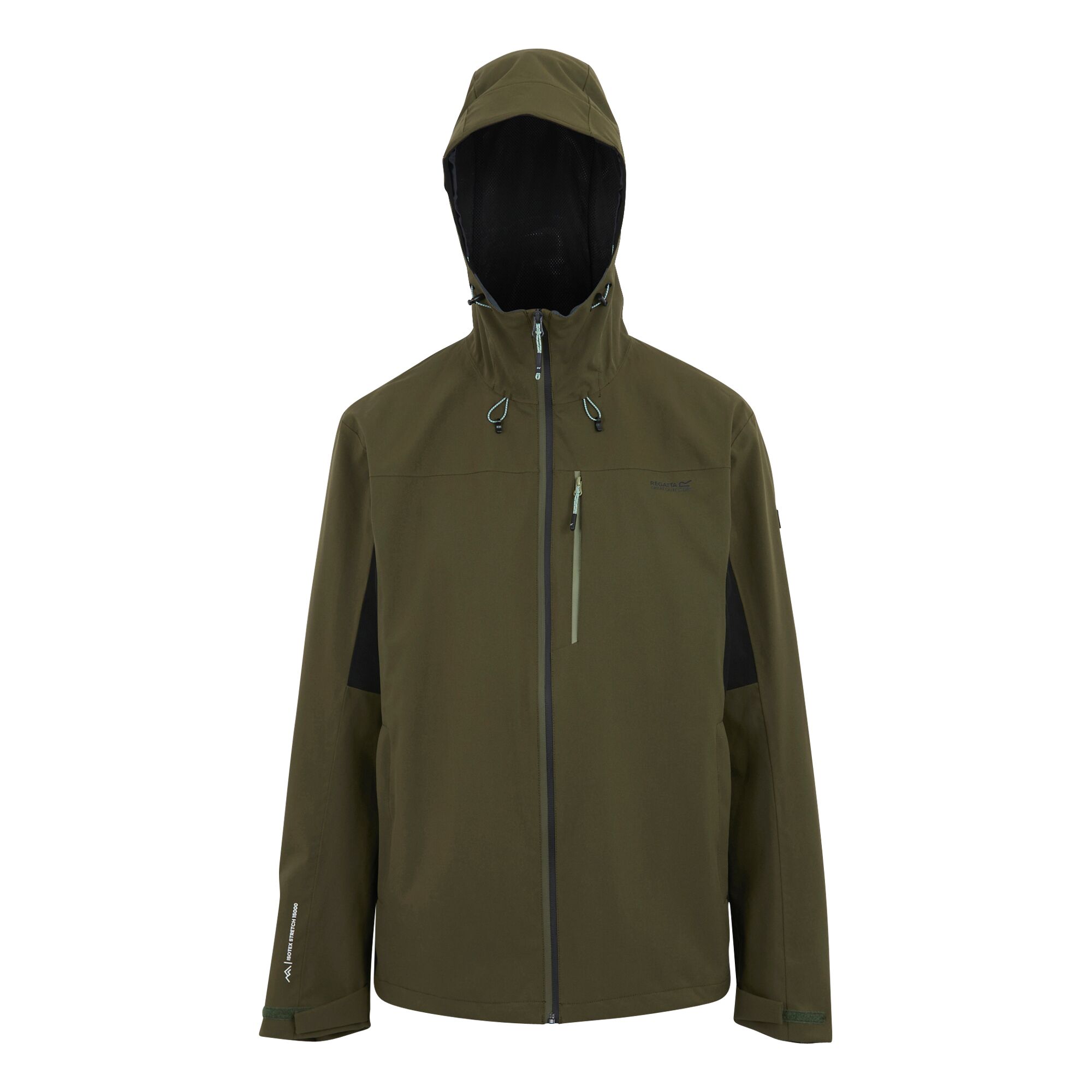 Легкая, водонепроницаемая и ветрозащитная, но дышащая куртка из полиэстеровой ткани Isotex 15000, обработанной водоотталкивающим покрытием. Воздухопроницаемость: 15 000 г/м²/24ч. Проклеенные швы, регулируемый капюшон, манжеты и подол, сетчатая подкладка, водоотталкивающая молния, несколько карманов на молнии.