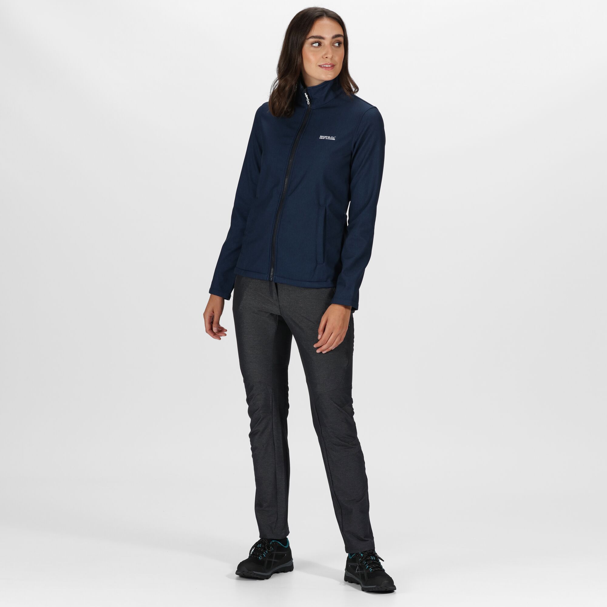 Elastīga un vēja necaurlaidīga sieviešu softshell jaka izgatavota no poliestera auduma, kas apstrādāts ar ūdens atgrūdošu pārklājumu un ir lieliski piemērota valkāšanai gan kā virskārta, gan starpslānis zem virsjakas aukstā laikā. 2 ar rāvējslēdzēju aizdarāmas sānu kabatas. Sastāvs: 96% poliesters, 4% elastāns.